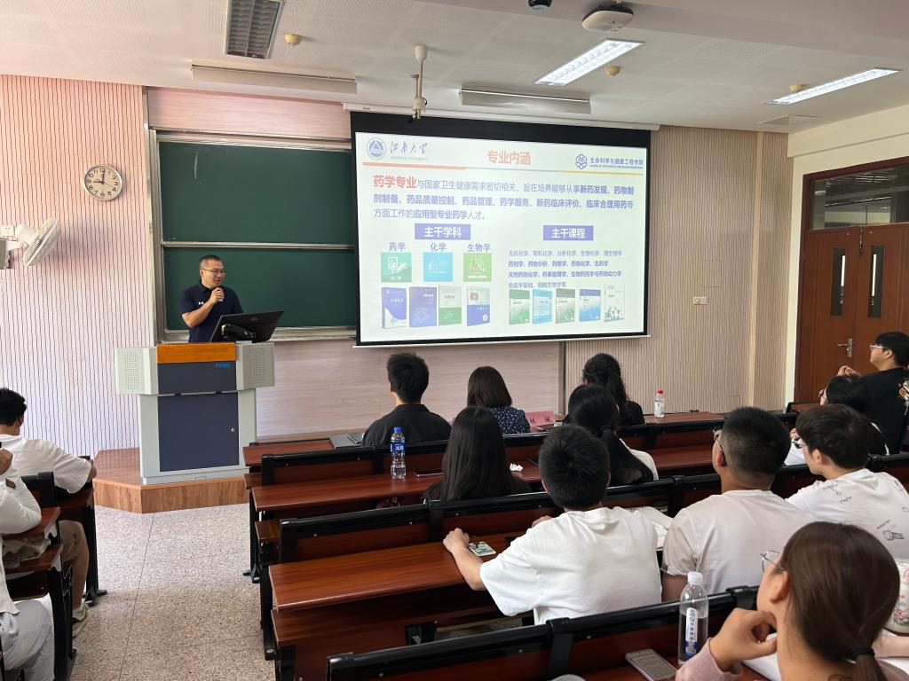 林佩和张慧杰分别就制药工程专业、药学专业的基础课程、师资力量、研究方向与特色、就业前景等内容作了系统介绍。讲解内容详实、深入浅出,不仅帮助学生清晰把握专业学习脉络,也进一步激发了大家的专业兴趣与学习动力,为树立学业目标奠定基础。